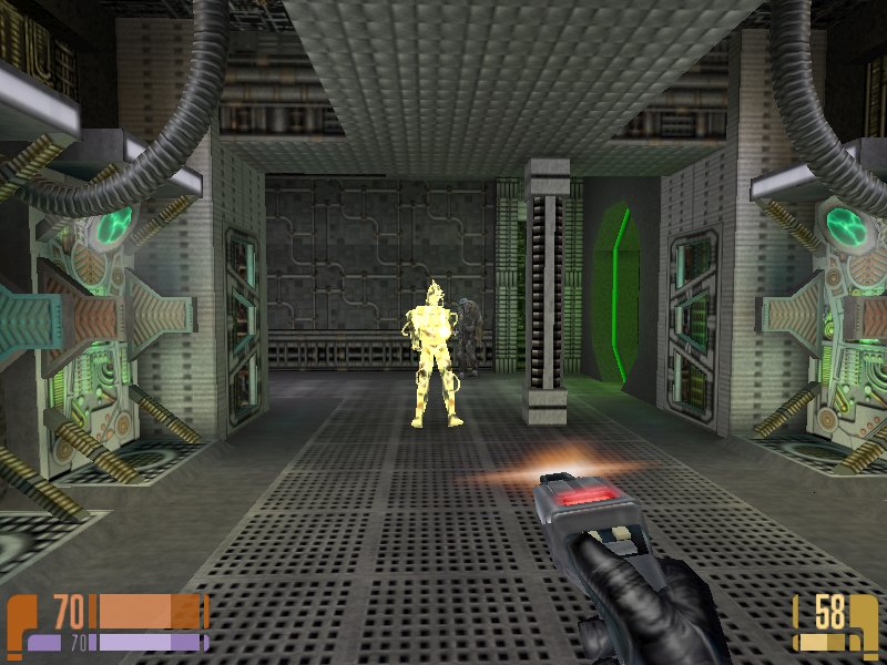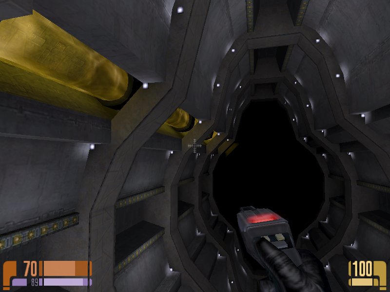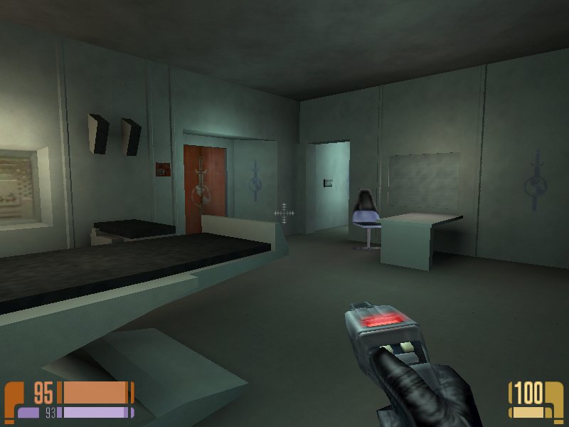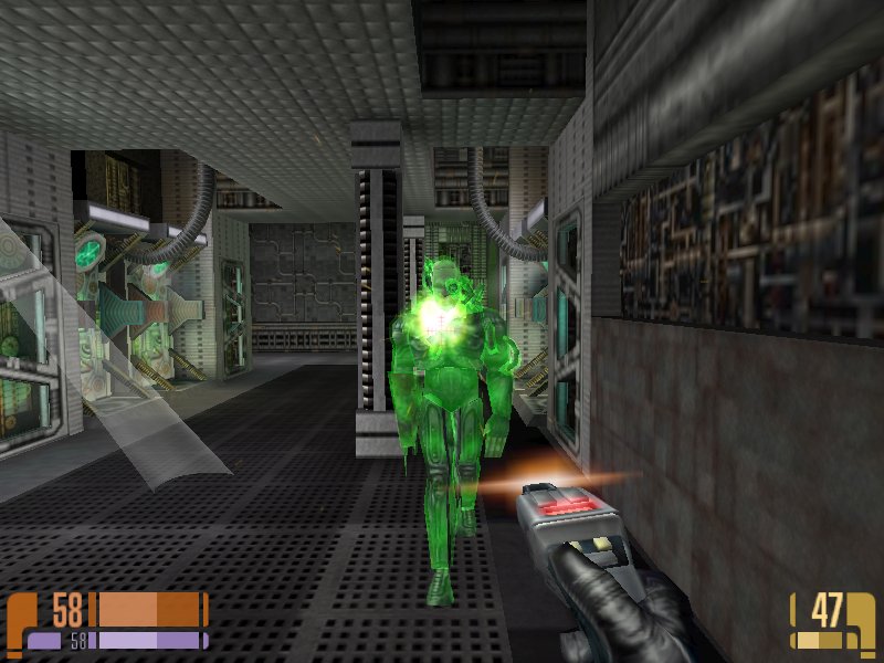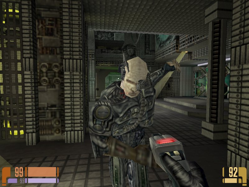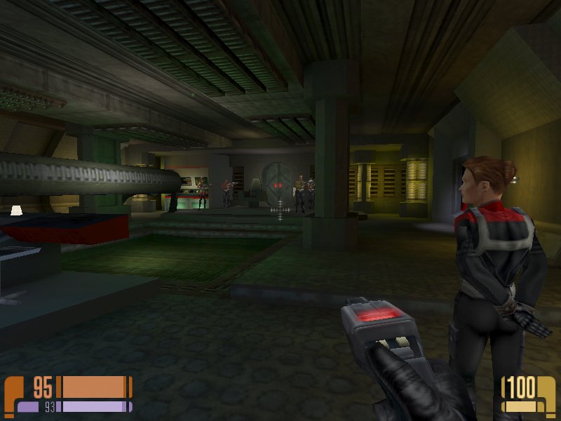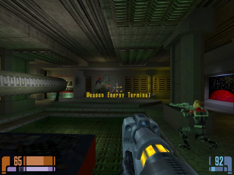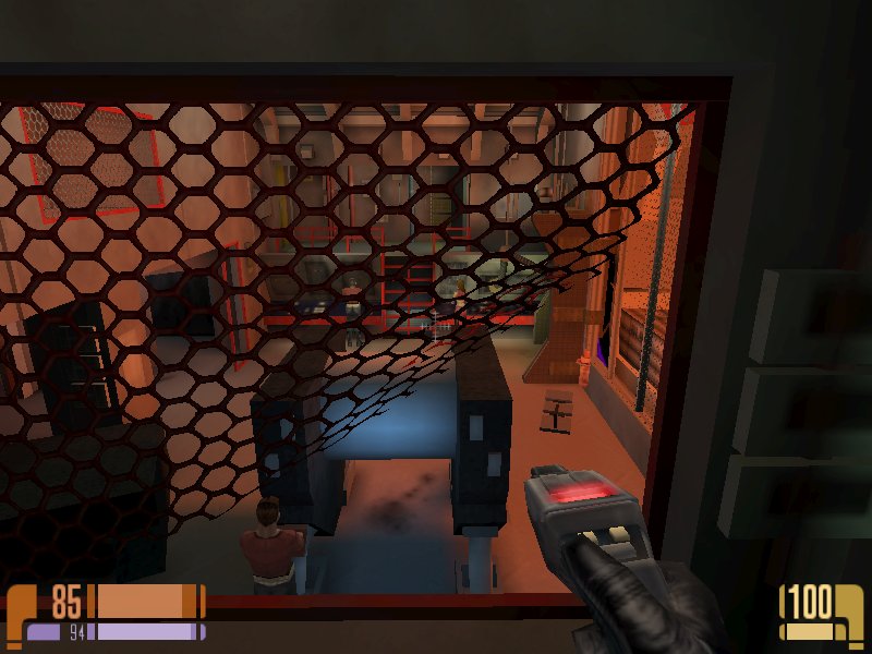 Raven grabbed hold of id's Quake III engine and didn't let go. The team did their best to push the engine and they did a commendable job although it's not quite as pretty as Quake III. Still, this game seethes with atmosphere, beautiful effects, amazing lighting, and that smooth (yet demanding) Quake III feel. The engine adapts well to Star Trek, Raven built some amazing Trek sets with it and some awesome alien ships. Klingon areas feel Klingon, Borg ships and crew are completely believable, and Voyager is covered with that beige Federation style.