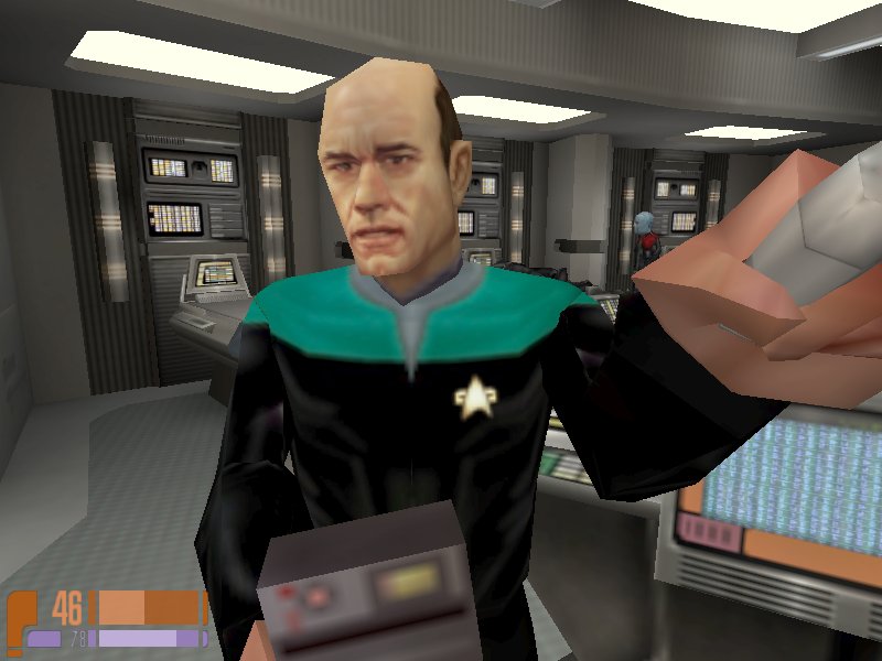 Raven took the time to recreate every character from the series, you get to see them all. They aren't perfect but, heck, you can't have everything when you work with a limited number of polygons. Seven is sort of man-styled (at least when she's in spandex)....but she's not around much so you don't have to worry there. Janeway's hair reminds me of a styled brick. Tuvok, Neelix, the Doctor, Chakotay, and Paris are all relatively good. The voices are what make them though.