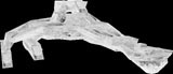 The main body itself is thin and flat and roughly trapezoidal. The widest base of the trapezoid is where the neck attaches. From either side of the attaching point of the neck, sharp triangular sections jut out like fangs.